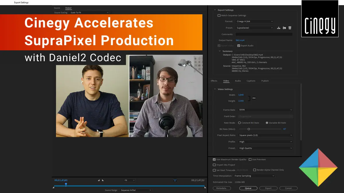 SupraPixel significantly enhanced its video production workflow by adopting Cinegy's Daniel2 codec and the TURBOCUT plugin, achieving faster rendering speeds and enabling high-quality 4K and 8K content creation even on modest hardware.